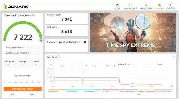 后续 TimeSpy Extreme 的跑分中, 3070Ti 拿到了 7341 的分数,和 3080 跑出的 8863 相比,离得还是比较远的。