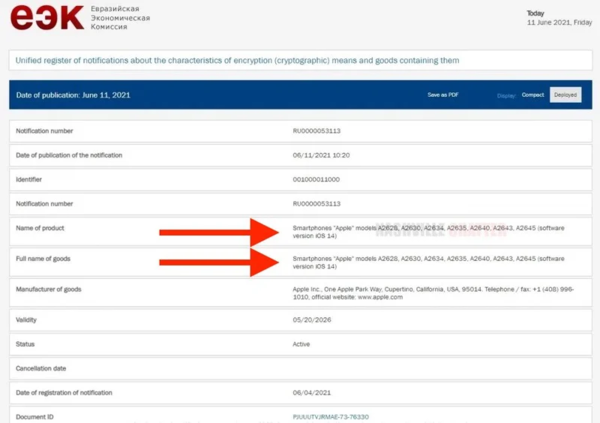 本月苹果正式召开WWDC21大会,公布多款新系统更新。而在近期有外媒报道称,苹果iPhone 13机型的认证信息出现在欧亚经济委员会(EEC)数据库中,数据公布了多达7款不同型号的iPhone。
