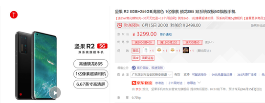今日,首发价4799元的坚果R2 8+256G版本,在京东自营直降至 2499 元,叠加 120 元券,2379元即可入手,赠送65W氮化镓充电头和12个月延保,部分城市还可以叠加9折消费券,到手价仅2100元左右。