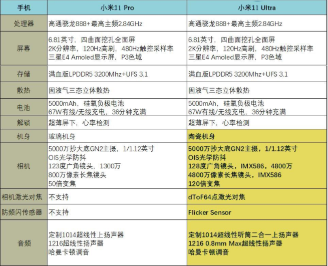 两者主要差别:小米11有着高屏刷,有着出色的摄像模组,有着大电池和快充,同时还有着顶级的屏幕,价格却比苹果便宜2000左右了。缺点就是上面说的,有点点重,不过习惯成自然了,而且这个配置,还需要什么自行车?