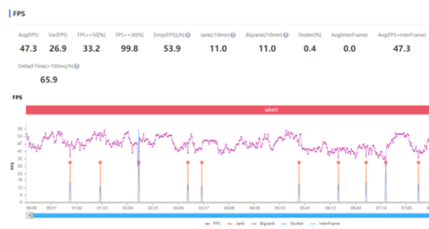 27分钟游戏帧率记录如上,在游戏目前未对测试版本固件开放90帧高帧模式的情况下,我们选择的已经是最高画质,而荣耀50 Pro全程保持稳定,帧率基本拉出了一条直线,平均帧率59.9FPS。