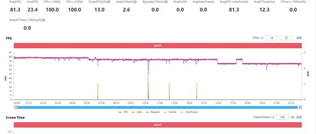 从实际测试来看,参测的两部机型在《和平精英》流畅画质+90帧帧率的画质设置条件下,都能够短时间内保证稳定的帧率表现,帧率波动均在小范围内。但是在游戏运行50分钟之后,B机型出现了过热问题,其帧率也开始出现波动并在之后下降到70帧左右。