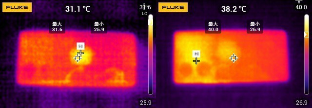 这一点从实际测试就能看出来,在游戏测试前后,我们也记录了荣耀50 Pro和某骁龙888旗舰的前后温度变化情况,从温枪反应的数值来看,测试开始前,荣耀50 Pro最大温度为31.6℃,某骁龙888旗舰最大温度29.6℃。一小时游戏后,荣耀50 Pro最大温度达到了40℃,上涨8.4℃,而某骁龙888旗舰最大温度则达到了44.8℃,上涨了15.2℃,后者温度计变化幅度远远高于前者,结合帧率情况来看,出现骁龙778G不输骁龙888的情况也就不难理解了。