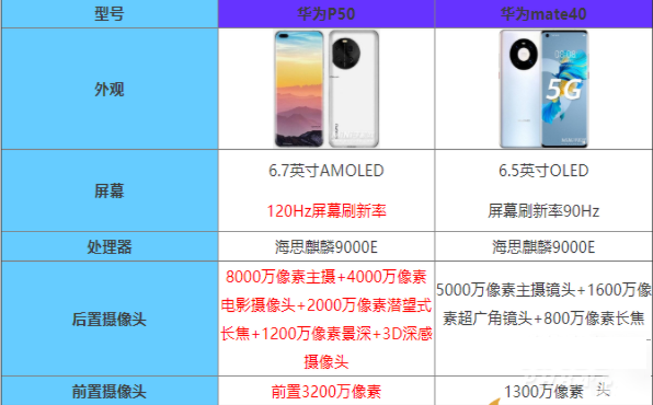 华为p50和华为mate40怎么选 华为p50和华为mate40参数对比