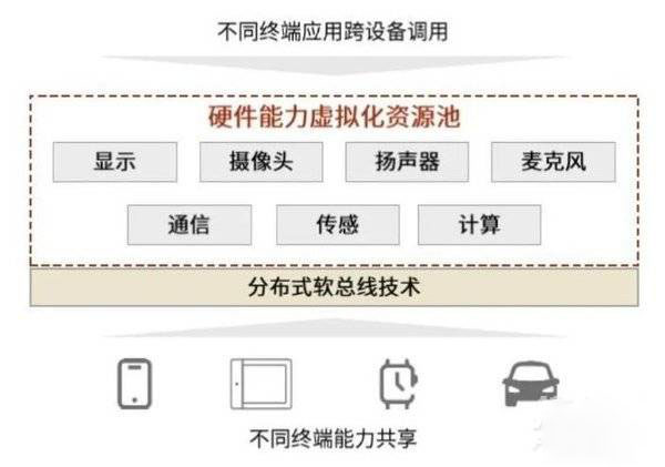 华为官方的定义中HarmonyOS与传统操作系统的定义最大的区别的是面向的是不同设备终端,管理的已经不局限于单个设备上的硬件设备,还包括PC、手机、手表、电视等智能终端设备组成的超级终端。单个设备的硬件可以通过硬件总线连接,这些智能设备如何做到高速连接呢?答案是通过分布式软总线技术将虚拟化的硬件设备相连接,从而形成一个超级终端,而HarmonyOS就是这个超级终端的操作系统。