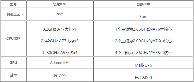 高通骁龙870和麒麟990哪个好-高通骁龙870和麒麟990参数对比