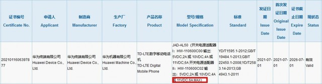 根据目前的消息,华为P50系列会采用高通骁龙888 4G版、麒麟9000、麒麟9000E和麒麟9000L四种芯片。这部“JAD-AL50”的入网信息为4G机型,所以它很可能就是骁龙888版机型。如果说系列中会有4G芯片,安排给“小杯”华为P50就再合适不过了。