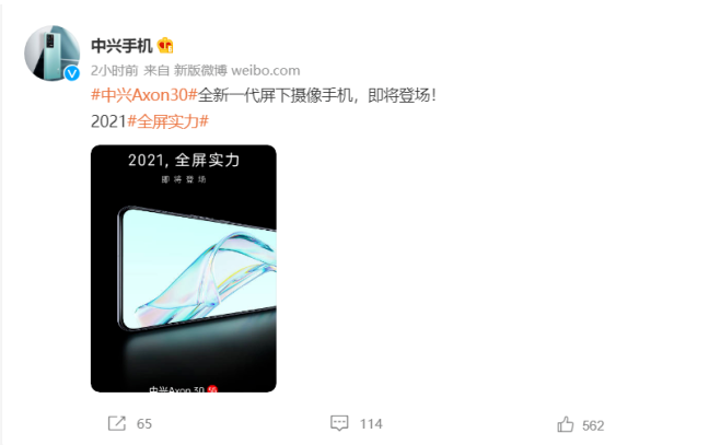 7月5日中兴终于宣布:中兴Axon30全新一代屏下摄像手机,即将登场!口号是2021全屏实力,说起屏下手机,目前国内手机厂家,也就中兴正式发布并且上市过,那就是中兴A20,这个第一代屏下手机虽然整体配置一般,但是毕竟也是屏下手机新历史。