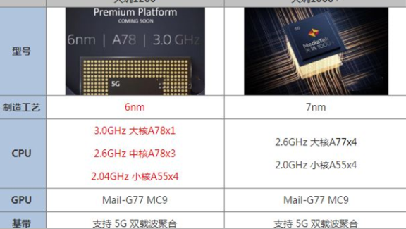 在制程上,天玑1000+为7nm工艺,天玑1200为6nm工艺。