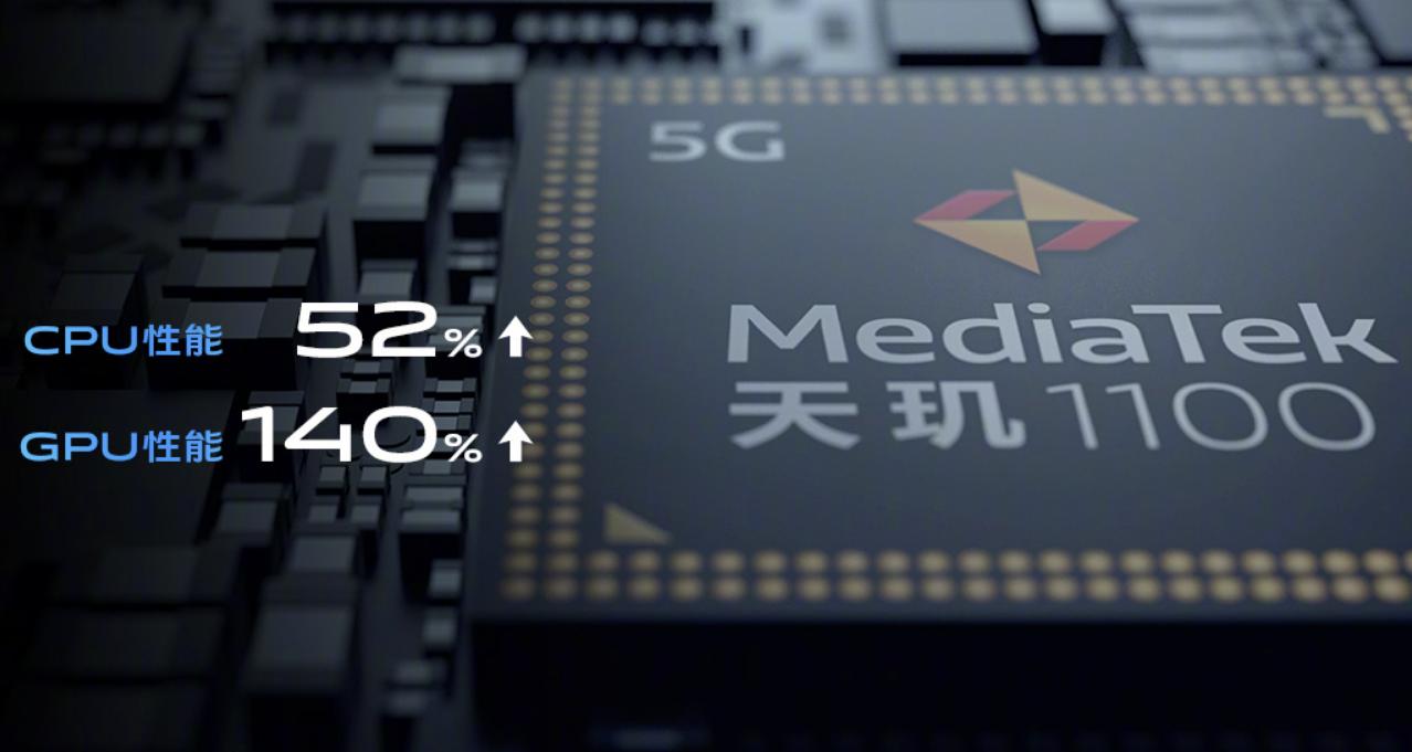 天机1100采用台积电6nm工艺制程,CPU由四颗主频为2.6Ghz 的A78大核心和四颗主频为2.0GHz的A55能效核心“4+4”双丛集架构设计,GPU为ARM G77 MC9,集成M70基带,支持 5G 双载波聚合、双 5G、以及 VoNR 高清通话等关键 5G 技术,有效的降低了功耗,最高UFS3.1闪存支持,最高支持一亿像素拍摄支持,支持WiFi6、蓝牙 5.2以及最高144Hz刷新率;