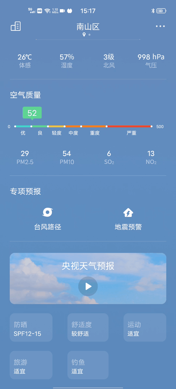 3、除地震预警信息外,vivo手机还支持台风路径提醒,可能是vivo地震提醒融合在天气应用内的原因,整体信息更丰富一些。