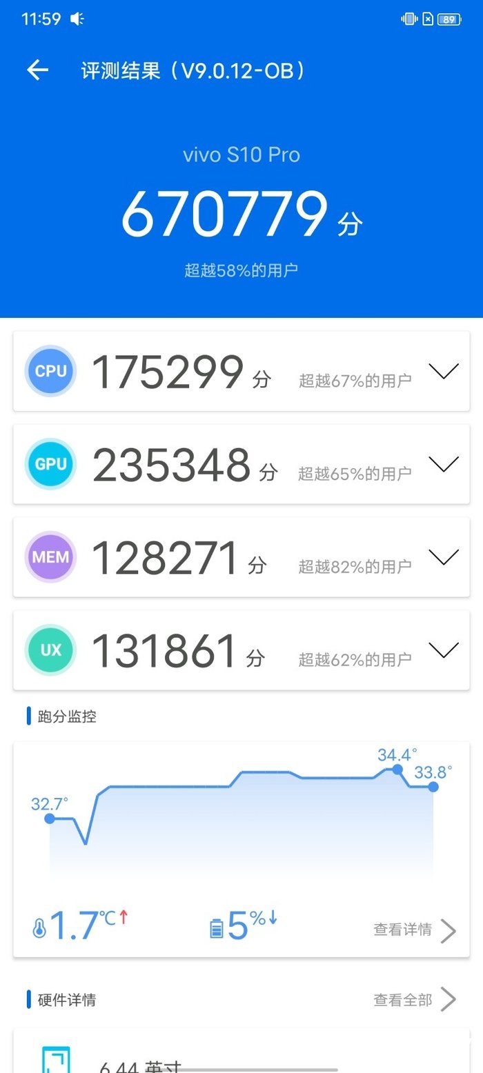 另外,针对打游戏手机发热的问题,vivoS10Pro使用大面积VC均热板+石墨散热膜+均热绝缘膜的散热组合,再加上其采用的是金属中框,散热能力明显提升。