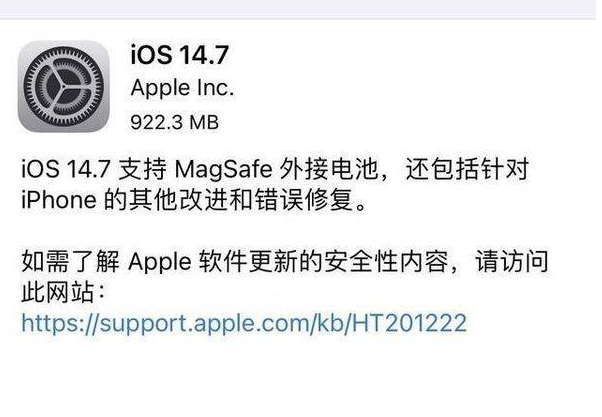 更新方面,iOS 14.7主要为 iPhone 12 系列手机加入了对MagSafe外接电池的支持,还包括对 iPhone 的其他改进和错误修复,具体如下: