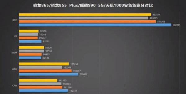 安兔兔跑分中,麒麟990 5G GPU为16.5万分左右,骁龙865为22万分左右,差距较为明显。