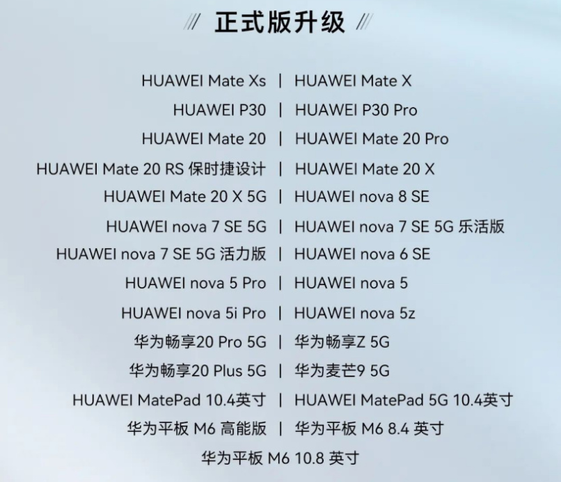 近日,HarmonyOS官方宣布,旗下共27款机型进入正式版升级,具体如下:
