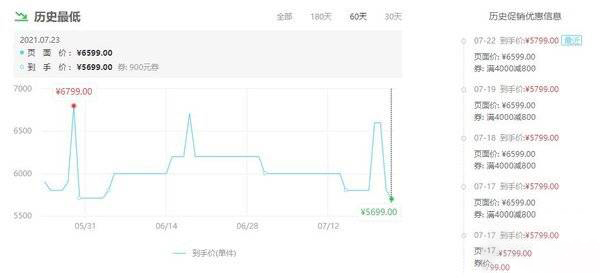 目前降幅最大的就是直降900元,7.23号最新的价格是5699元。