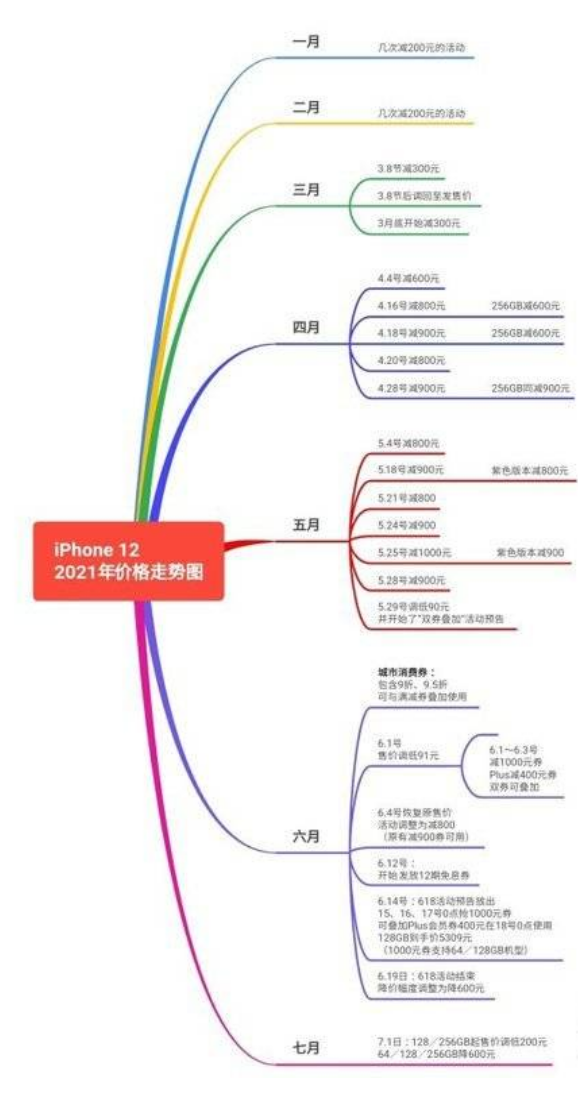 iPhone 12的价格以及降幅,与时间肯定成线性关系,今年iPhone 12降幅最大的时机肯定是年底。中间还有618、双11等。