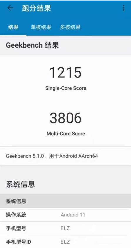 从测试结果来看,荣耀Magic 3单核得分1215,多核得分3806分,运行Android 11,手机型号为ELZ。从成绩来看,荣耀Magic的性能比骁龙888手机要更强一些。