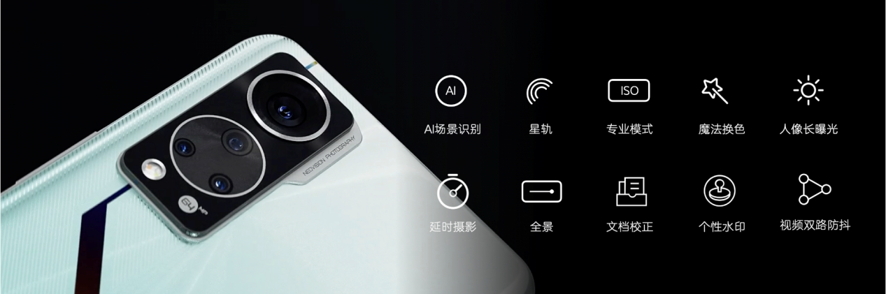 官方介绍,后置可进行多摄像头同时拍摄,支持超级夜景、魔法换色等功能,视频拍摄支持主摄及广角双路视频防抖。