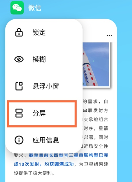 3、点击分屏,然后选择另一个要分屏的应用即可。
