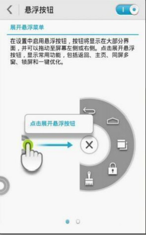 5、然后点击进入到“悬浮按钮”设置项,在该项中,会对“悬浮按钮”的功能做以简单介绍。