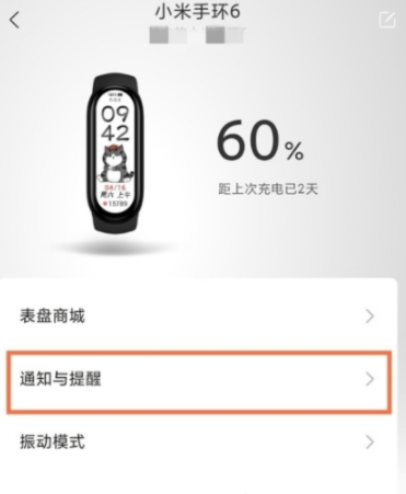 1、打开小米运动app,在我的页面点击绑定的小米手环6,点击通知与提醒。