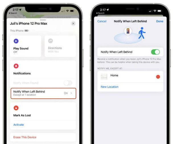 分离感应适用AirTag和适用“查找互联网”的第三方零配件,应用场景上,用户带上iPhone离开了,将钱夹或MacBook忘在咖啡厅里,则iPhone会通告用户。分离感应能够在“查找”运用中开启,且需要逐一开启每件物品的权限。同时,用户还能设定不可抗力事件,因而在有意将一些物品留到家中时,将不容易接到报警。