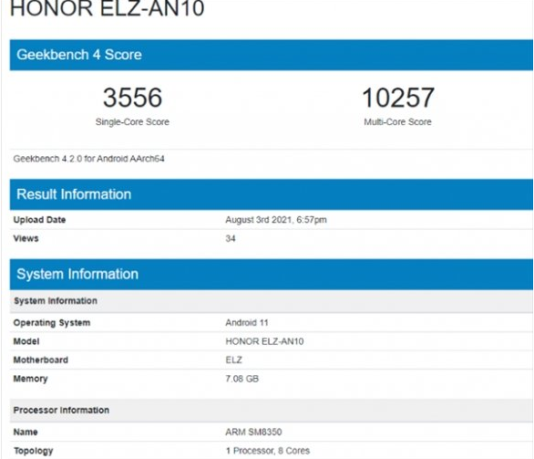 据了解,荣耀Magic3系列的单核成绩为3556,多核成绩为10257,搭载骁龙888+处理器,配备8GB运存,运行基于Android 11操作系统。