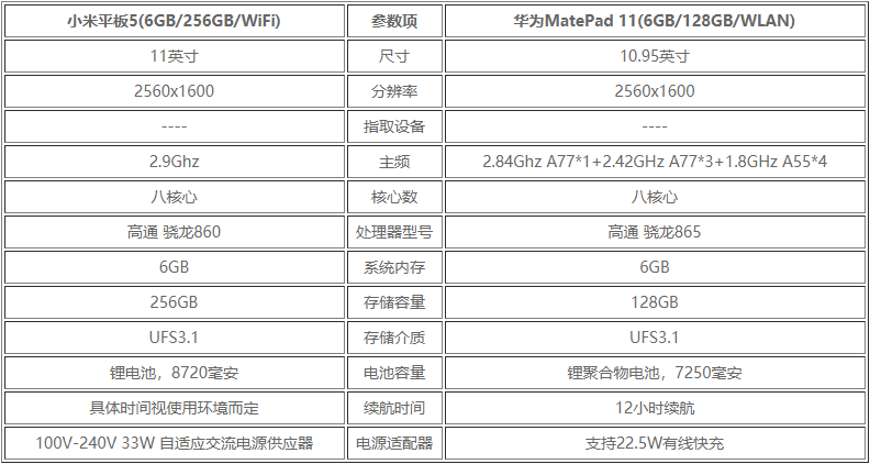 小米平板5和matepad11哪个好 小米平板5和matepad11区别对比