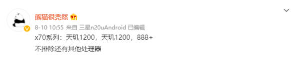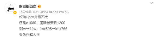 据数码博主 @熊猫很禿然 今日最新爆料,vivo 即将推出的 X70 和 X70 Pro 手机相比上一代,升级并不明显,依旧是采用三星 Exynos 1080 芯片,而国际版则采用联发科天玑 1200 芯片。
