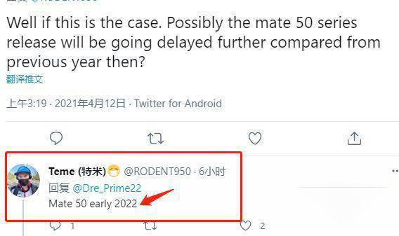与此同时,特米还爆料了华为mate50的发布时间,他爆料称华为mate50最有可能会在2022年年初的某一时刻发布。