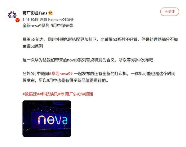 以上是小编整理的有关华为nova9什么时候上市的上市价格和华为nova9最新官方消息的相关资料信息,希望能够对大家了解相关情况有所帮助,想获得更多消息资讯请关注jrs直播!