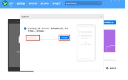 4、打开手机端手机助手APP,会弹出连接验证码,将其输入电脑端,点击立即连接,如下图所示: