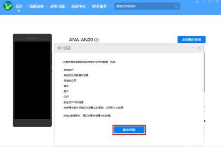 9、确定备份数据后,在弹出提示框中点击“回退”,如下图所示: