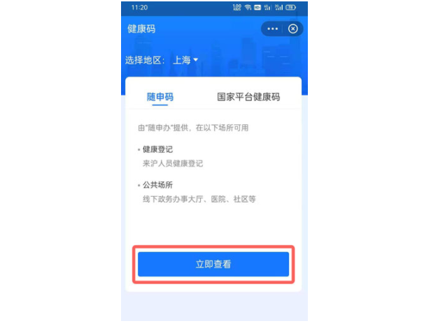 6、不过还需要点击【立即查看】按钮才可以查看健康码。