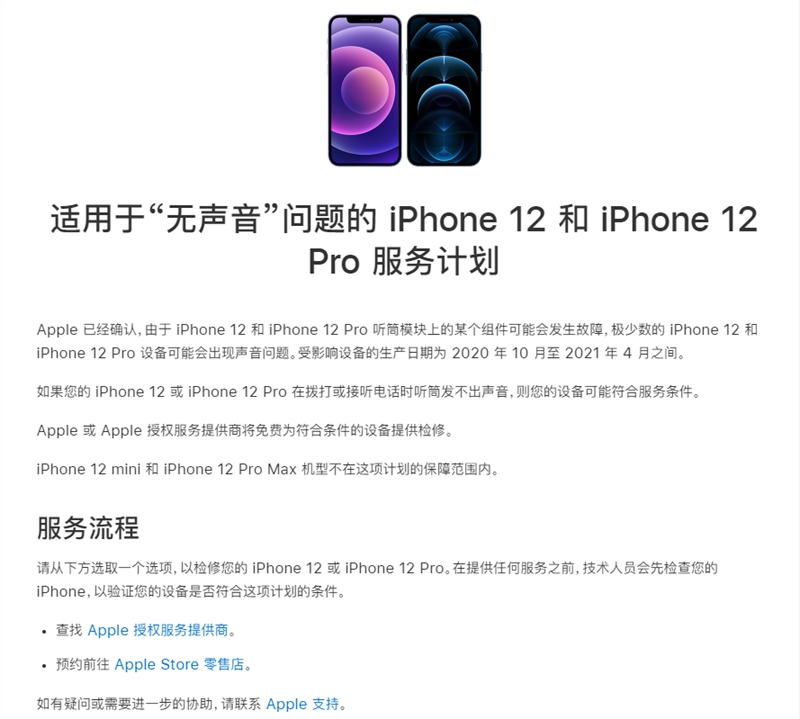 据jrs直播小编了解到,北京时间8月28日消息,苹果公司今天在其官网推出了iPhone12和iPhone12Pro服务计划,以解决少数机型出现的“无声音”问题。