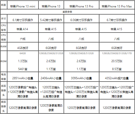 iphone13各系列详细参数配置 iphone13参数配置对比
