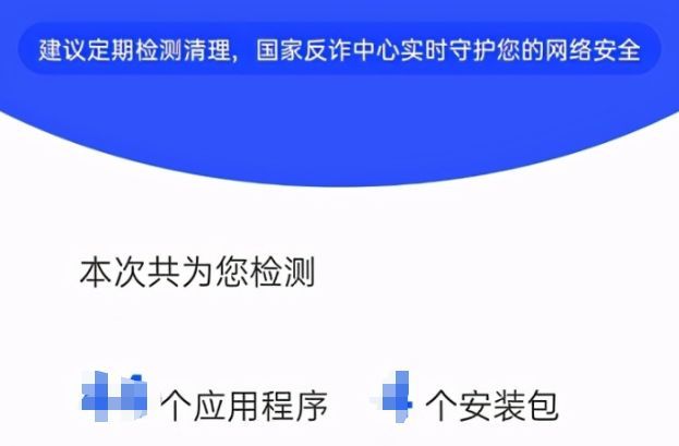 您可以在国家反诈中心APP里快速检测全机已安装应用和未安装应用安装包,精准识别手机内可疑诈骗应用。