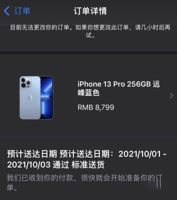 现在购买 iPhone 13 Pro、iPhone 13 Pro Max 1TB 存储版需要等到 10 月底发货了。128GB、256GB 和 512GB 的存储选项可以继续购买,但很多已经不能保证在 9 月 24 日当天发货。