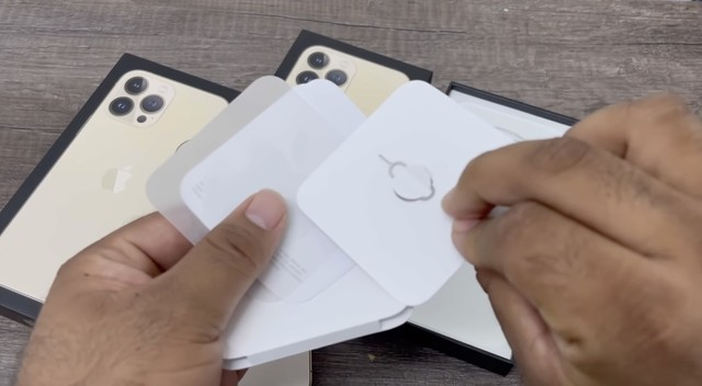 内部一切都与iPhone 12 的包装相同。里面有一条闪电口转 USB-C 充电线、贴纸和一个 SIM 卡拆卸工具。显示屏上的白纸封面显示了静音开关、音量按钮和电源按钮的标签。