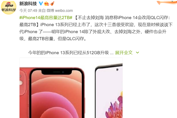 但在近日,根据@新浪科技爆料显示,明年的iPhone 14除了外观大改、去掉刘海之外,硬件也会升级,最高2TB容量,但是QLC闪存。不少网友认为,如果考虑到手机性能越来越强,软件功能越来越多,拍照画质越来越好,更大的存储空间的确是有必要的。