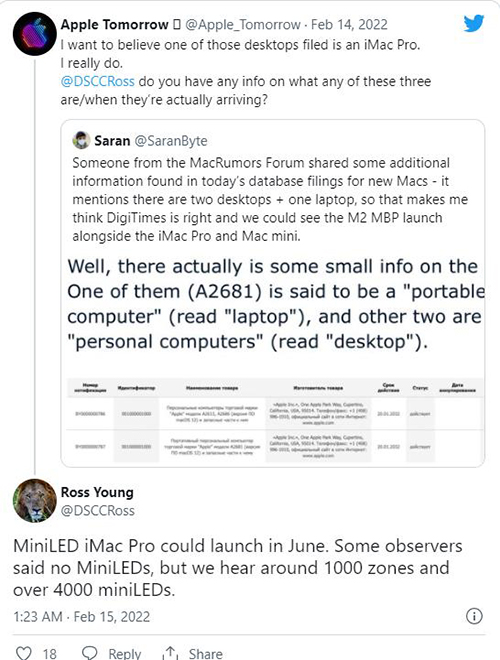 传闻最初表明,新的 iMac 可能在今年春季推出,但 Ross Young 在 1 月下旬表示,他预计将在“夏季”推出。当时,Ross Young 宣称面板出货预计在 6 月开始,8 月或 9 月可能会推出,但现在他预计时间表似乎已经提前。