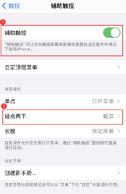 1.请先在 iPhone 设置-辅助功能-触控中将“辅助触控”功能开启。