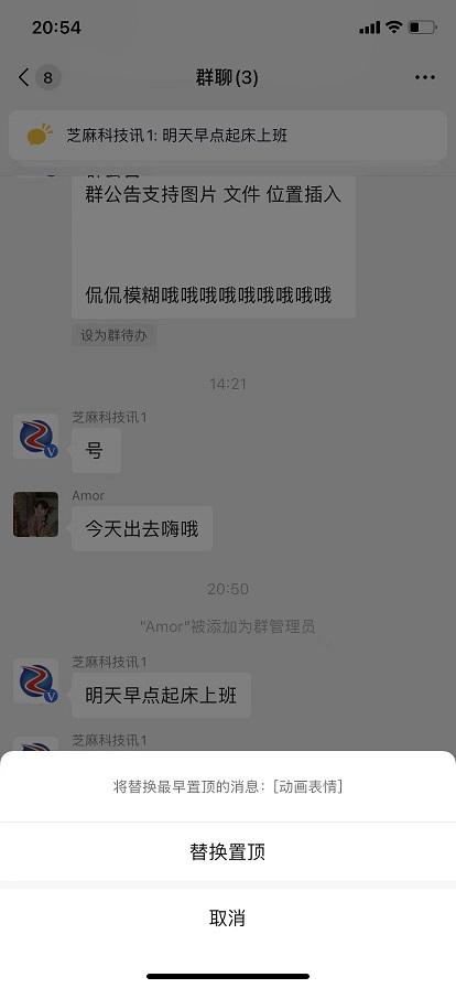 当置顶群聊消息超过5条时,会提示将替换最早置顶的消息。