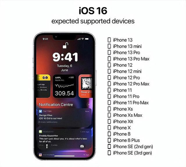 最后,iOS16的更新名单也遭到了爆料。