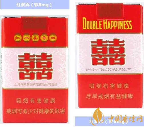 产品类型:烤烟型,焦油量:11mg,烟碱量:1.0mg,一氧化碳量:13mg,包装形式:条盒硬盒(每盒 20 支,每条 10 盒),烟支规格:84mm。红双喜(硬)是以中国红为主色调,中间是一个大写的“囍”字。意喻对美好生活的向往与追求。烟气绵软舒适,香气自然。价格大概8元一包。