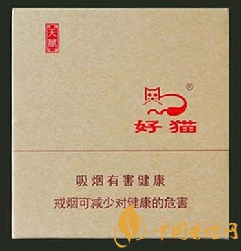 好猫(天赋)官方定价为100元/包。好猫这款百元级别的香烟包装可以说是非常的低调内敛,正面采用灰色的包装加上好猫的logo,简约干练直奔主题,属于是有实力的内在玩家。这款香烟,现如今在一些地方价格已经降到了90元一包,入手还是很有性价比的。口感方面,烟叶采用无添加剂、原生态、纯天然,而且是纯手工选叶包装。抽起来烟气细腻柔和,香韵丰满谐调,入喉舒畅,烟支填充比较严实,属于比较赞的一款香烟,就是名气不是非常大。