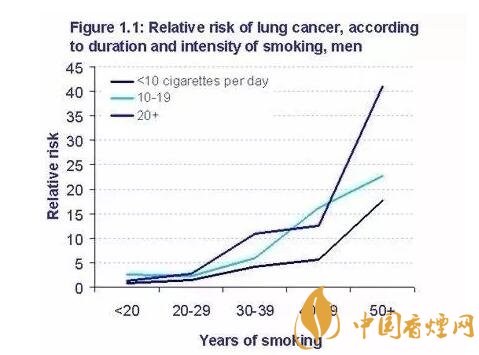发生冠心病的危险及死亡则与每天吸烟的支数直接相关。研究报告表明,每天吸烟1~14支患心肌梗死的相对危险度是不吸烟者的1.4倍,吸烟15~24支者则为3.4倍,每天吸烟在25~34支则为5倍,每天吸烟超过35支则增至7倍。