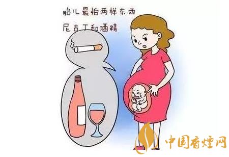 香烟中食物有害物质之一尼古丁会引起胎盘血管收缩,胎儿的血应减少,因此会出现宫内缺氧。