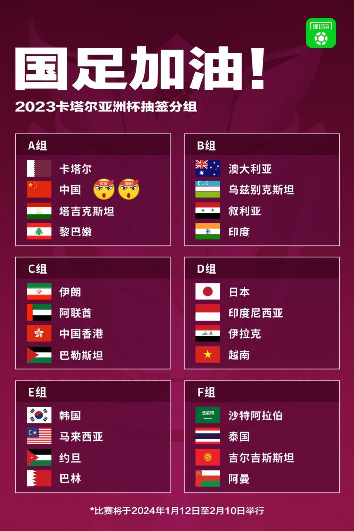 经过长时间的等待,2023年亚洲杯决赛阶段分组抽签结果终于出炉。中国男足国家队领队邵佳一在接受《北京青年报》记者电话采访时表示:“我觉得还可以。首战塔吉克斯坦队关乎出线形势,我们必须按照与对手胜算五五开来准备。”此前,中国队被分在A组,与东道主卡塔尔队、塔吉克斯坦队、黎巴嫩队同组。